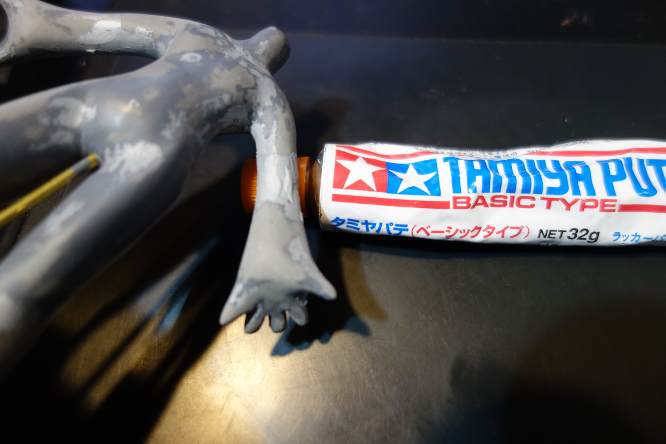 薄い部分はタミヤのチューブ式ラッカーパテです。