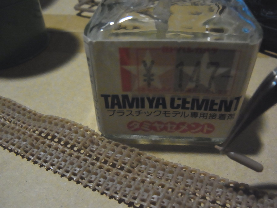 前の記事では履帯並べた後にピンを挿して流し込み接着剤で固定していた。