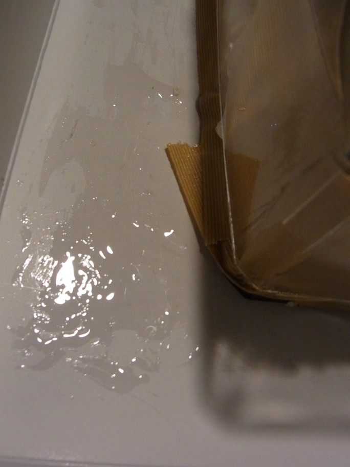よーく見てみるとガムテープの接着面がウォーターに侵されている。