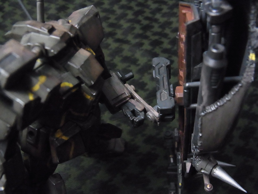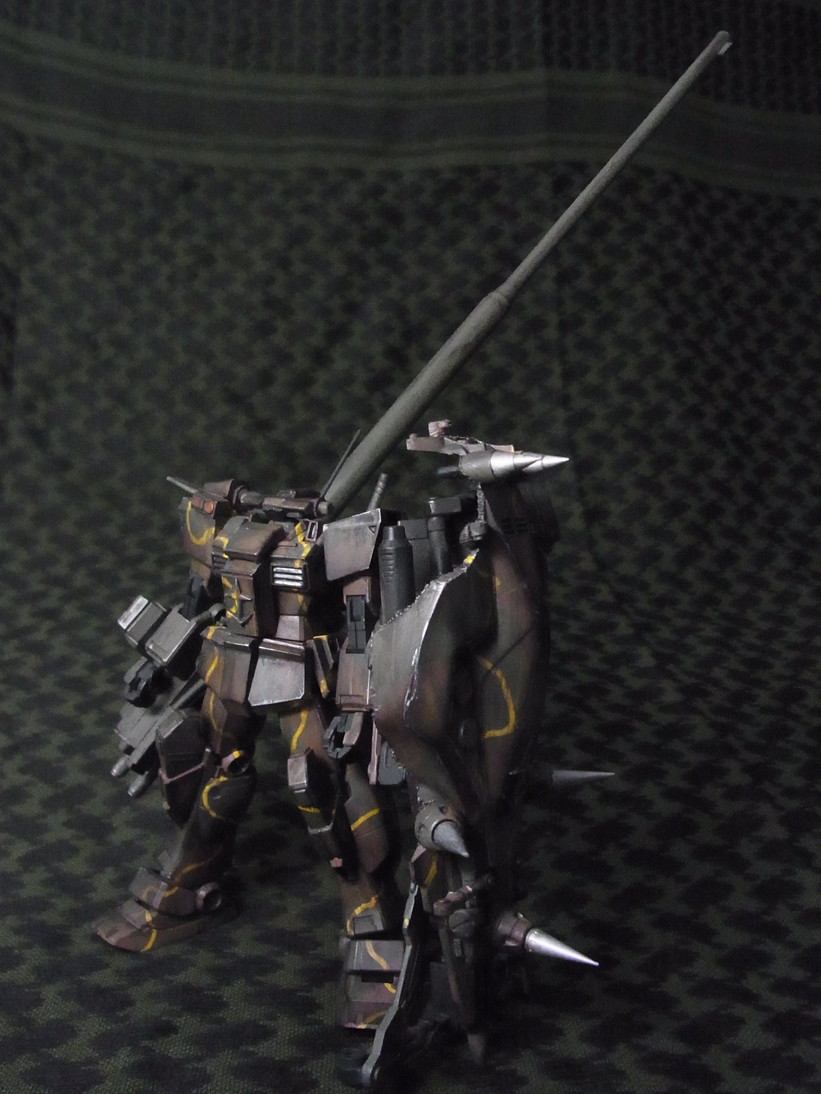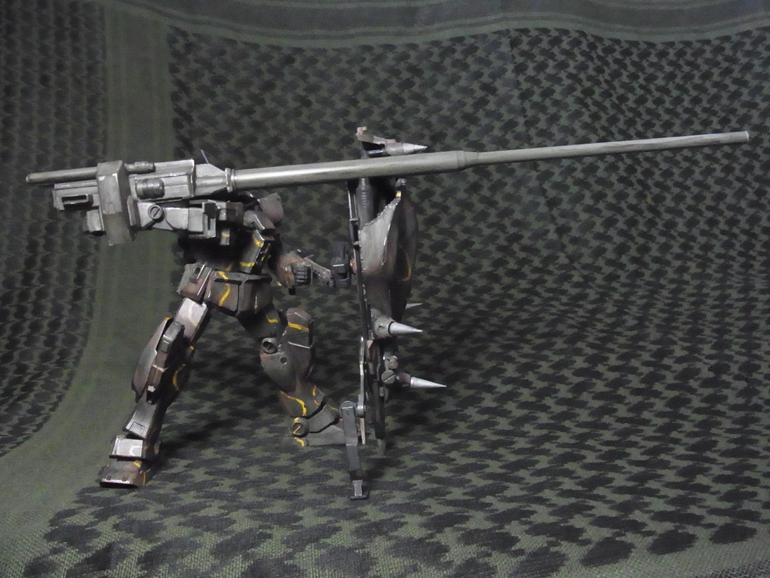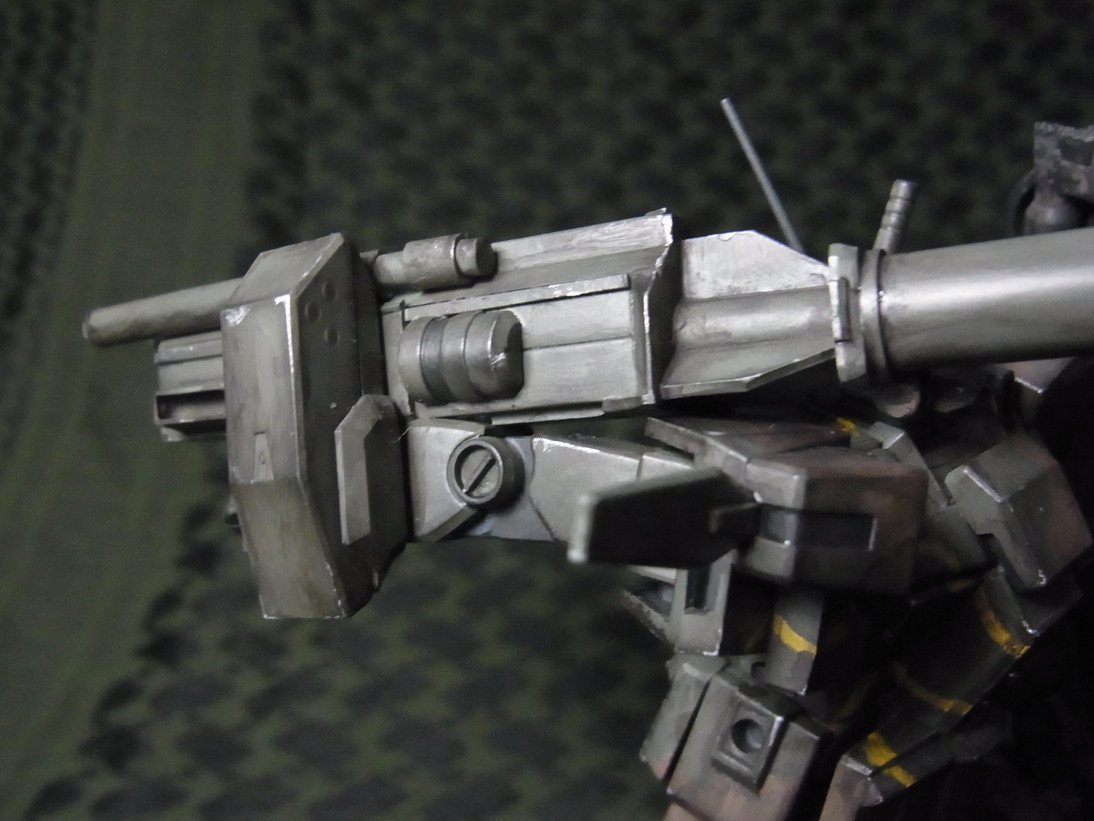 最後は腕を真後ろに向けて砲を盾に乗せます。