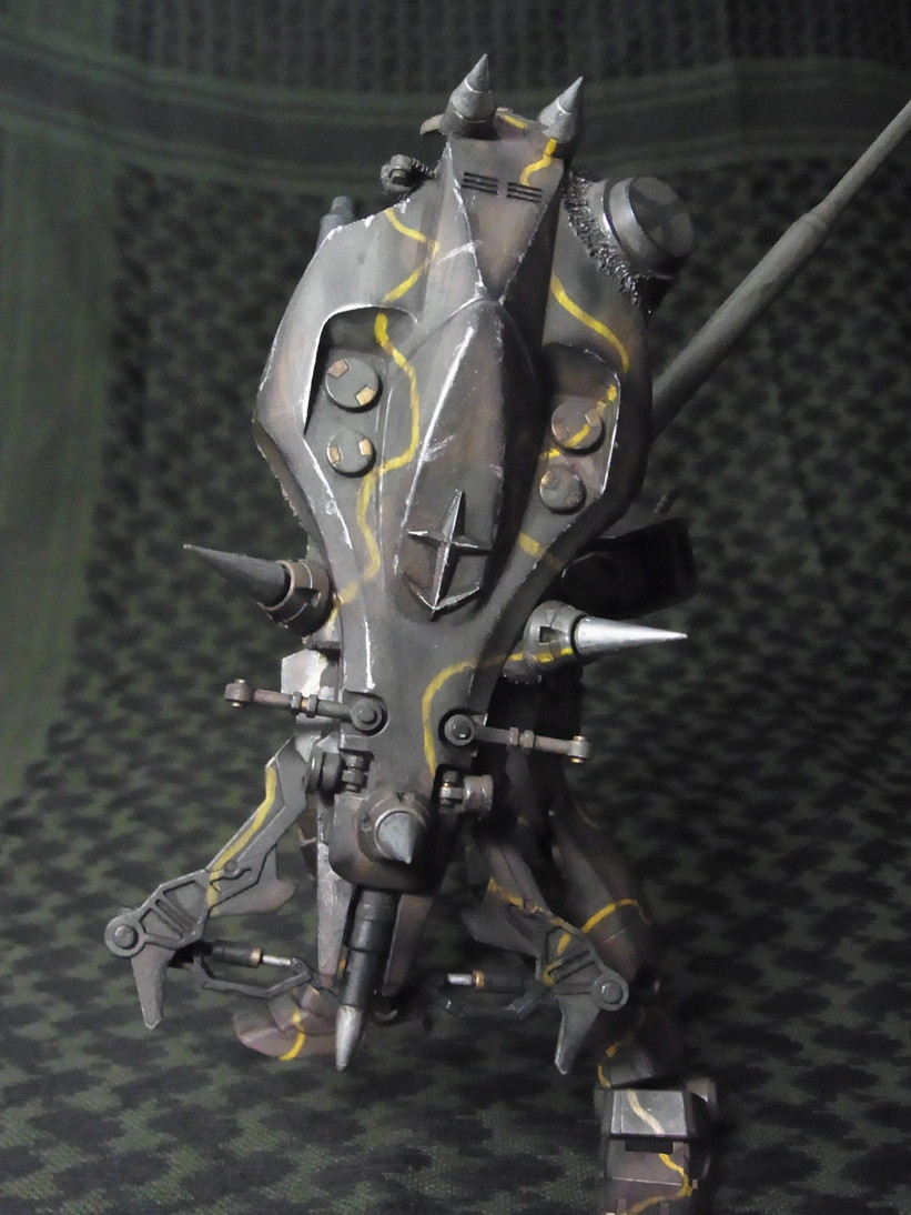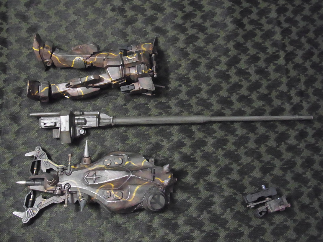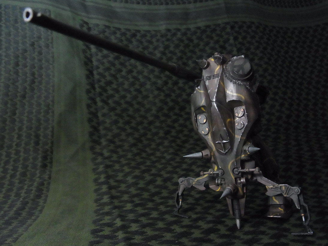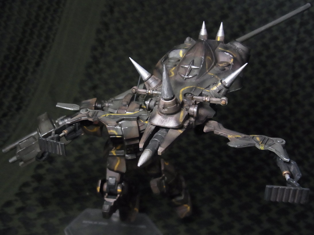 最後は腕を真後ろに向けて砲を盾に乗せます。