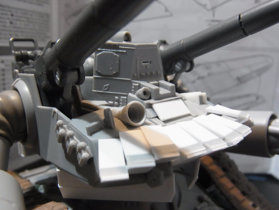 胴体にはシュルツェンが貼ってあるぞ。(劇場版ガルパンの茶色い奴の周りの板。)