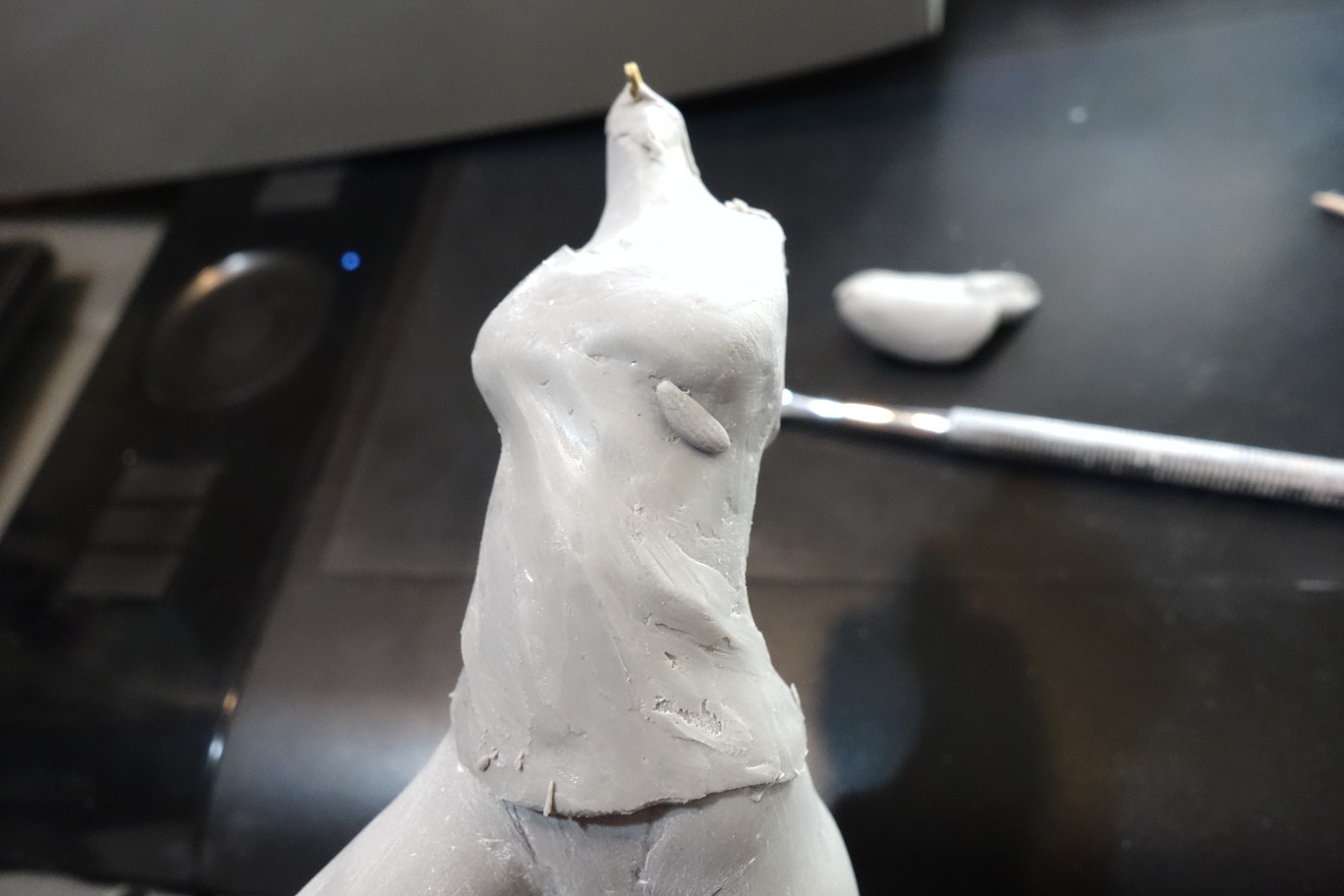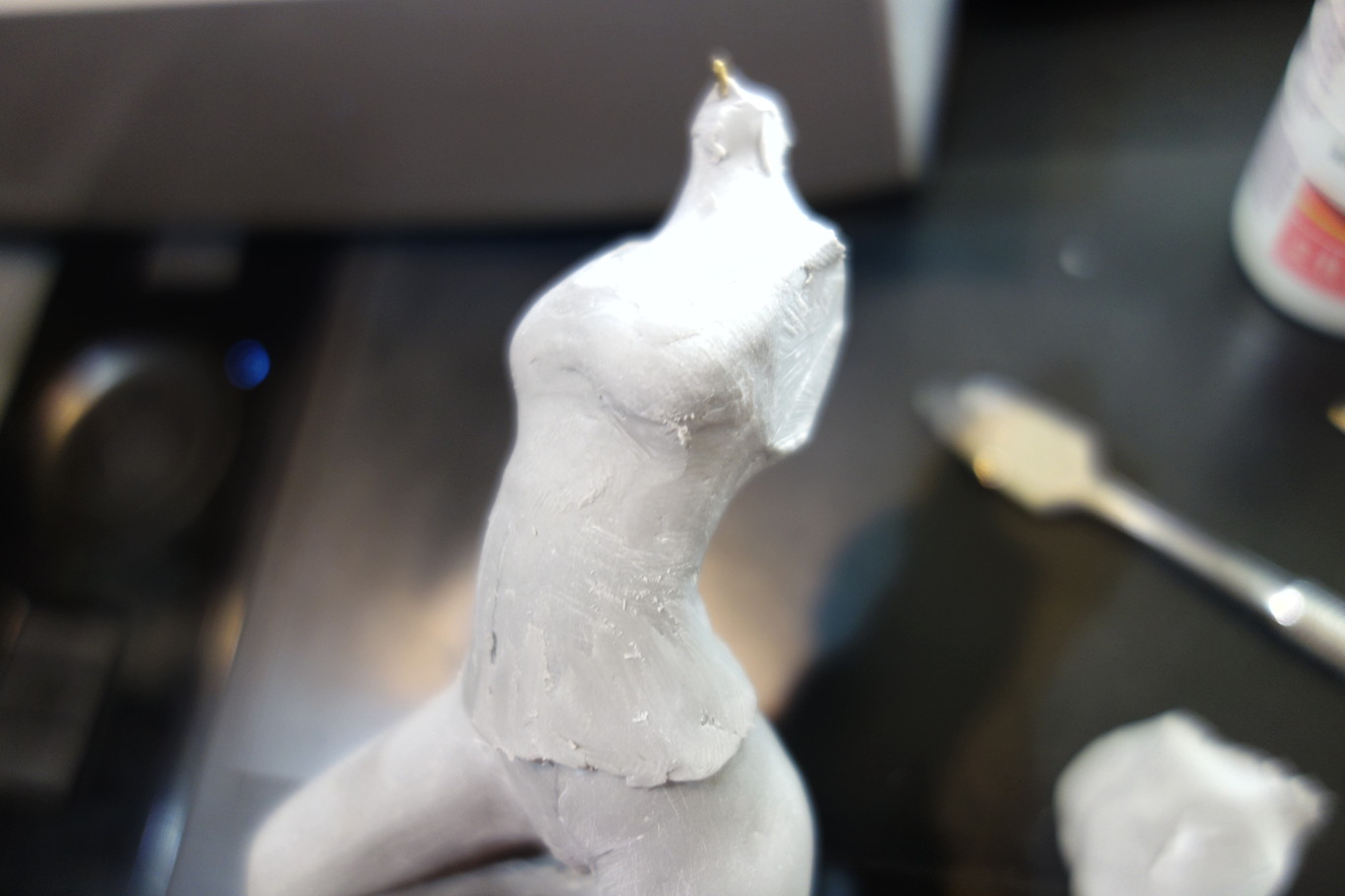 頭の元になる球体や胴体のS字、腕とか足の芯になる棒とか股間の基部をこねて焼きます。