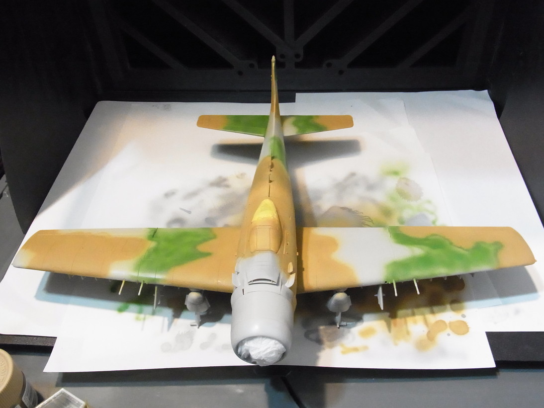 迷彩の境界線ははっきりさせたいので端の部分を絞って吹いてみたぞ!